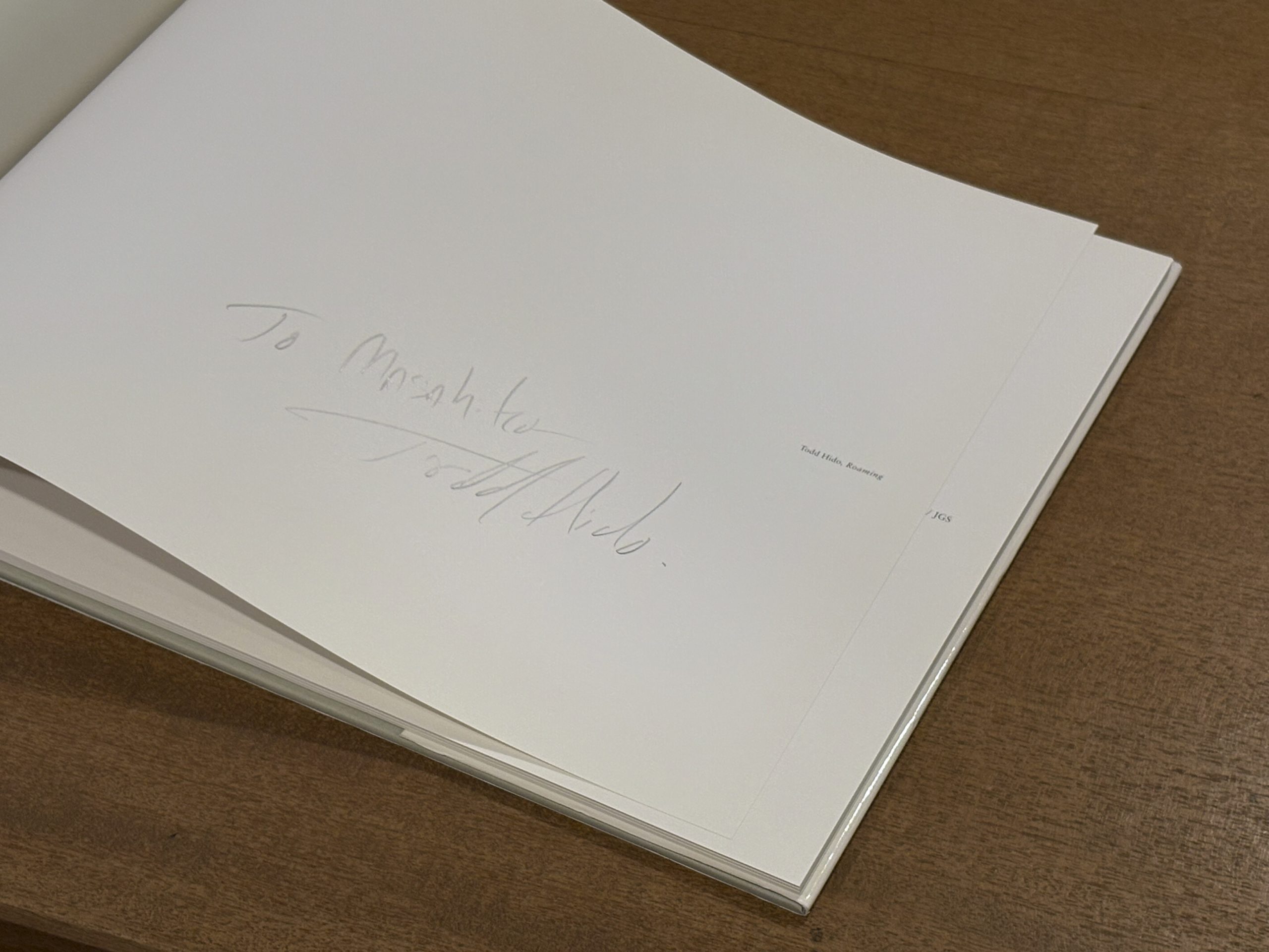 時が経ち少し色褪せた表紙の写真集になってしまったけども、彼はサインをする際「この写真集は妻との思い出の1冊です。出会った頃に彼女の持っていたこの写真集が色褪せてしまって悲しいと涙を流しました。私は、それも写真なんだよと、声をかけたんだ。」と。